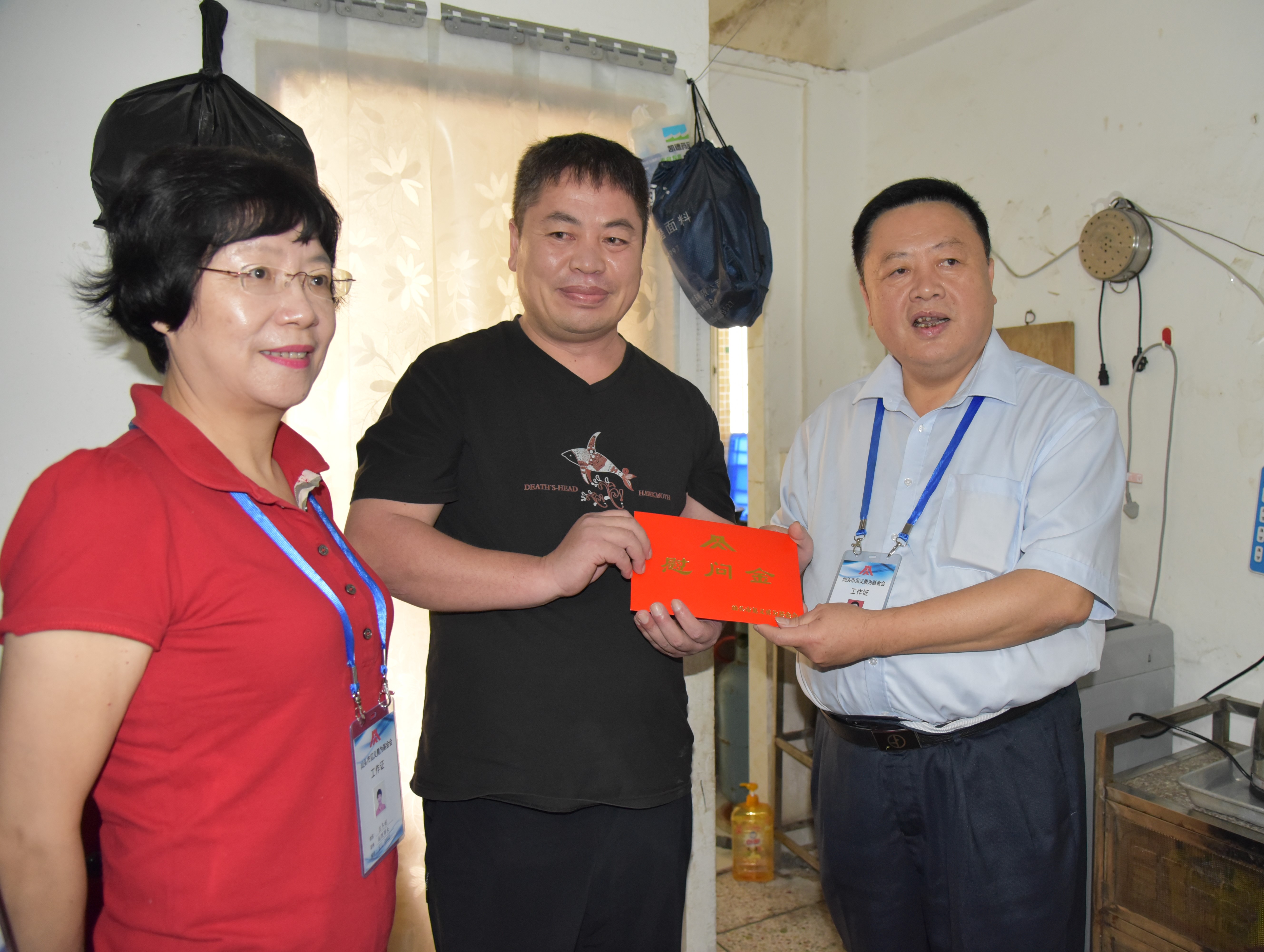 市见义勇为基金会理事长郑康宏带领慰问组先后前往金平区和龙湖区,登门看望慰问见义勇为牺牲人员陈斌、方佳明、吴汉庭的家属和见义勇为伤残人员朱福子。(陈斌、方佳明为抢救落水同伴献出了年轻的生命,退休职工吴汉庭为抢救落水妇女而英勇牺牲,保安队员朱福子为保护人民群众生命财产与歹徒展开搏斗英勇负伤。)